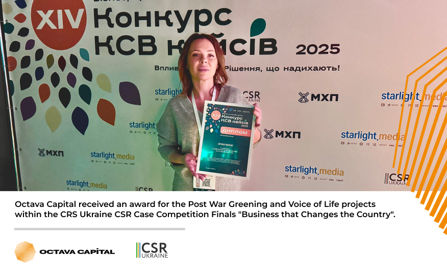 For the Octava Capital team, this award was confirmation that responsible business is an important component of the country’s recovery – through caring for the environment, supporting life, people and communities that shape the future of Ukraine today.