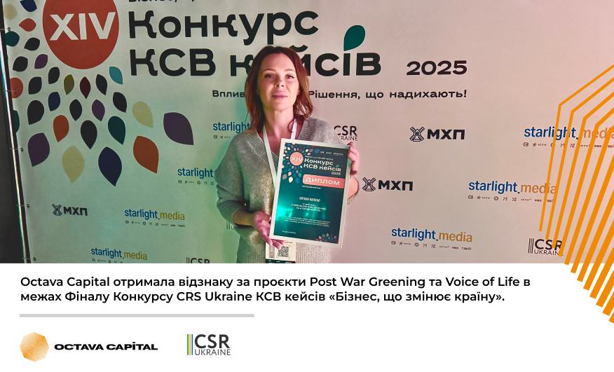 Octava Capital отримала відзнаку за соціально значущі проєкти Post War Greening та Voice of Life в межах Фіналу Конкурсу CRS Ukraine КСВ кейсів «Бізнес, що змінює країну»